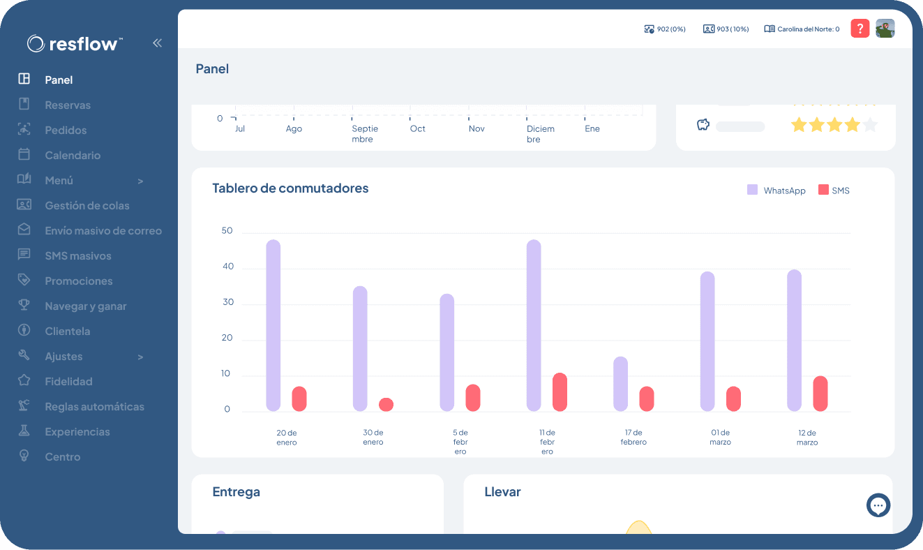 Puedes enviar mensajes ilimitados por WhatsApp para comunicarte sobre reservas y pedidos: desde la confirmación de la reserva, mesa lista, hasta los recordatorios. Aprovecha uno de los canales más utilizados del mundo, ¡sin preocuparte más por recargas!
