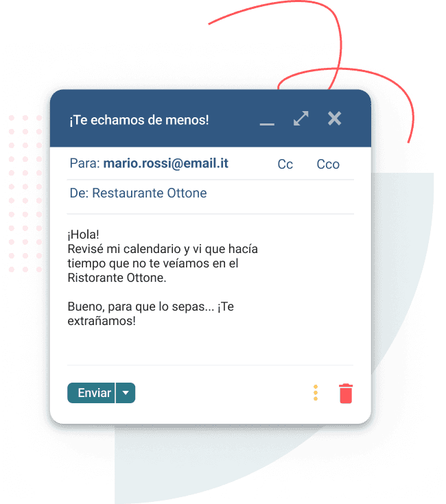 Utiliza tu lista de clientes para mimar a los visitantes más fieles. Envíales mensajes especiales para que se sientan valorados e invítalos a regresar. Haz que cada visita sea una experiencia memorable y una razón para volver.