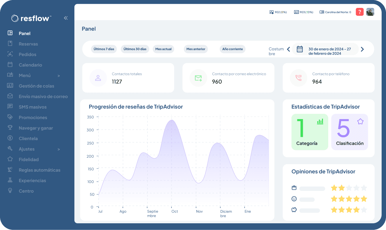 Resflow, la plataforma de gestión de reservas y marketing, específica para el sector de la Hostelería.